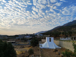 سازه اول آشرام ساهام را می بینید که چون نگین در قلب کوهستان می درخشد